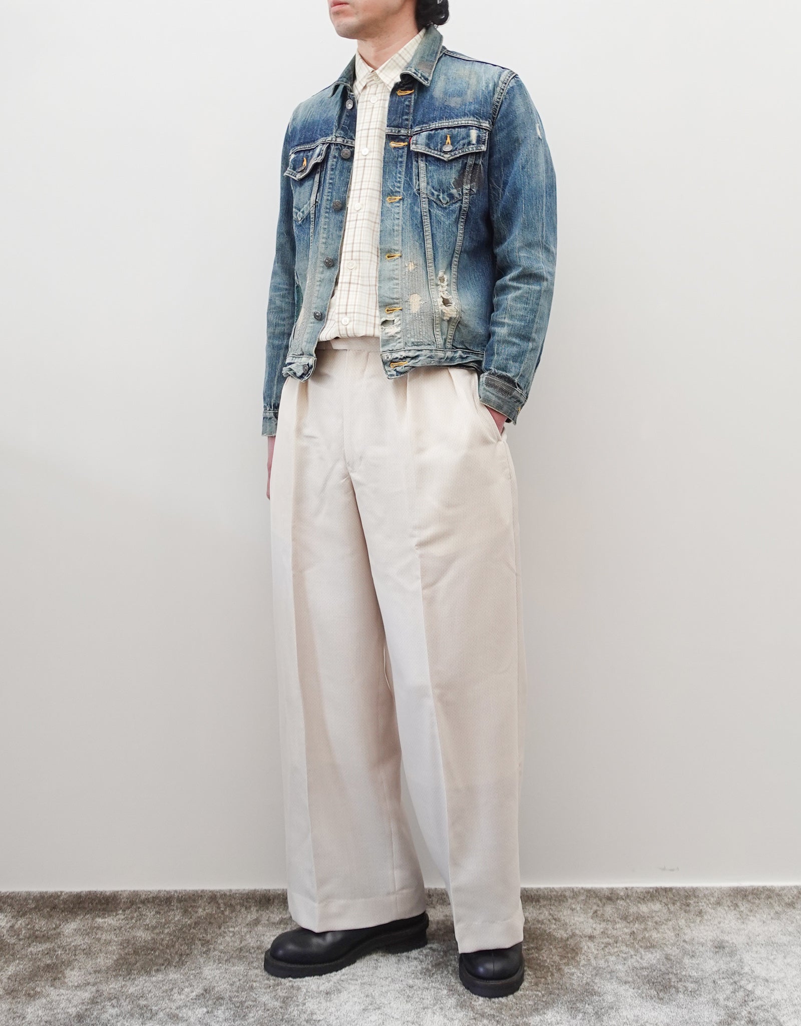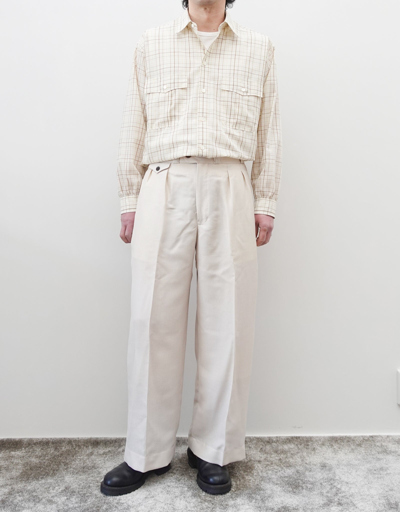 ラグジュアリーなリラックスに仕上げるためにドレスシャツをベースに運針の細かな縫製でダブルステッチにしてあり、上品さの中にカジュアル感を出すように仕上げています。