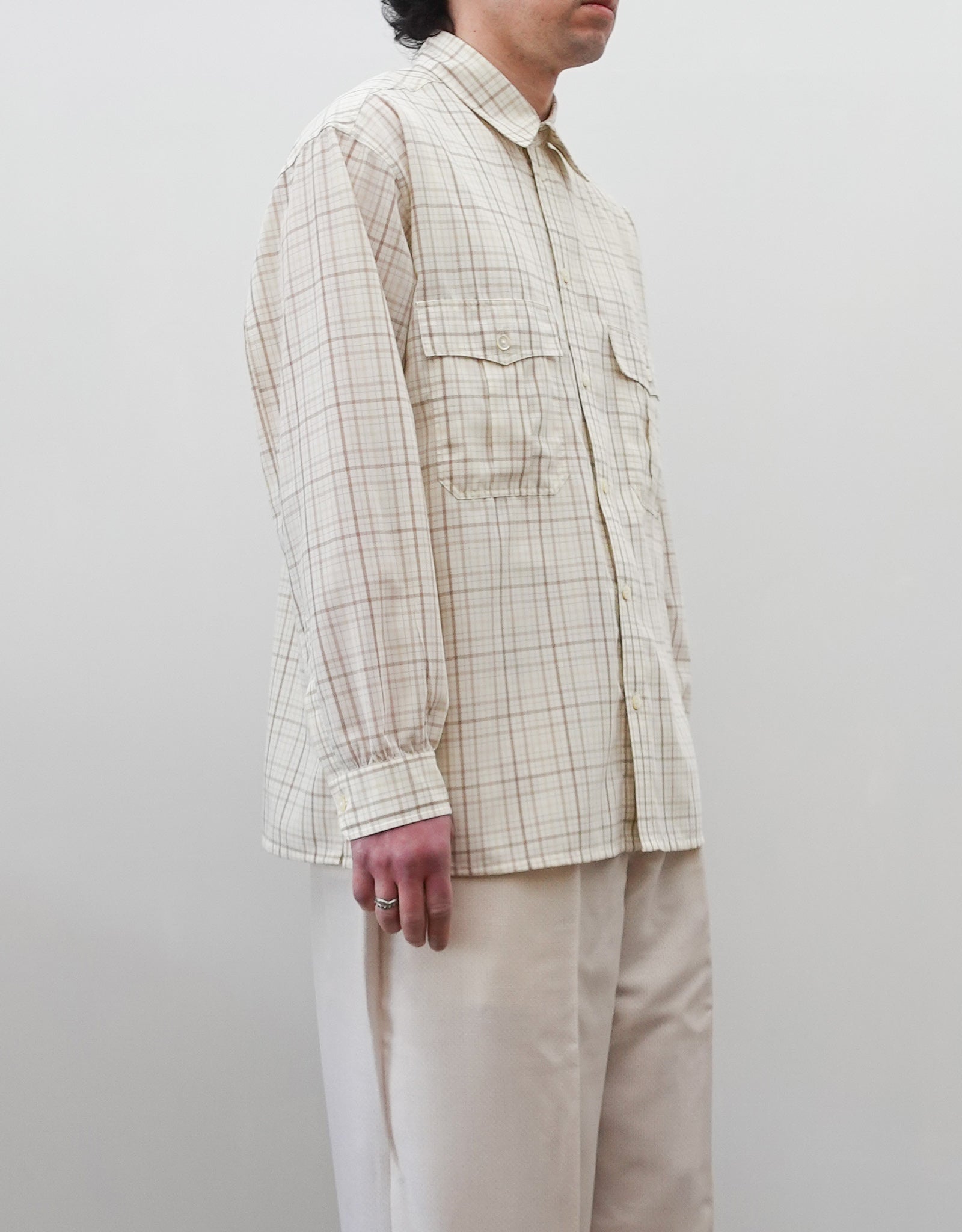 2026年のキートレンド「マルチチェック」。根津洋品店が提案する新作は、緻密な設計と機能素材を融合させた、夏に映える大人のサファリシャツです。